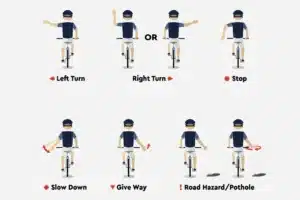 - Communicate with other riders: Let them know when there are bumps, rocks, cars, or other hazards on the road, and use the appropriate hand signals when stopping, slowing down, and turning.